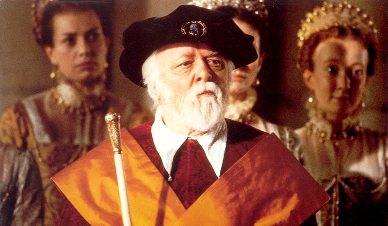 Elizabeth consulting her astrologer, John Dee.